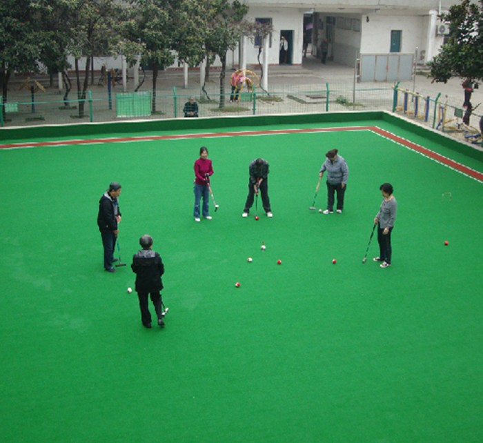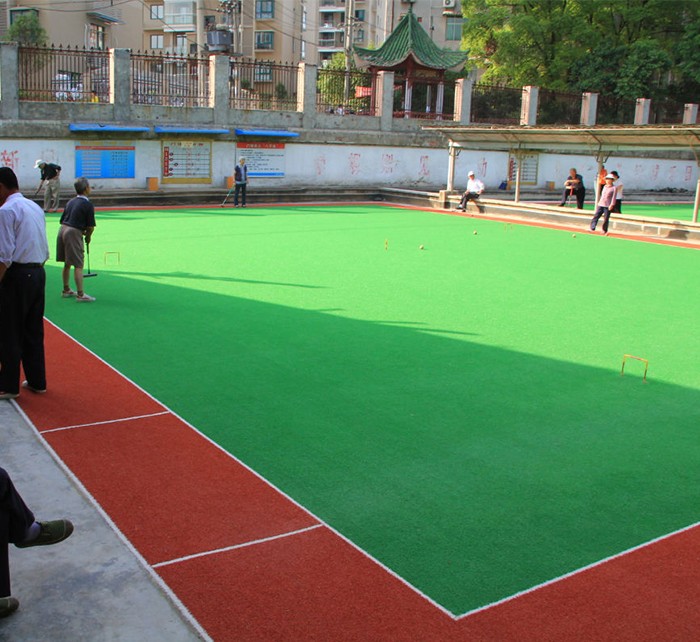 太阁体育人造草坪系列门球草,专为全民健身老年门球场建设打造。草丝分特值从4500-7500不等,草坪密度从24000-35000不等。草坪铺设后平顺无起鼓,草丝耐磨性更高。